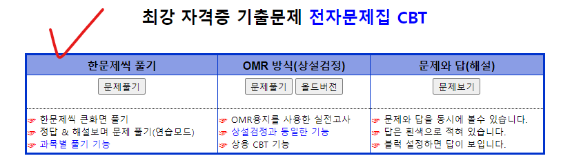 1."CBT 전자문제집 웹사이트" 방문