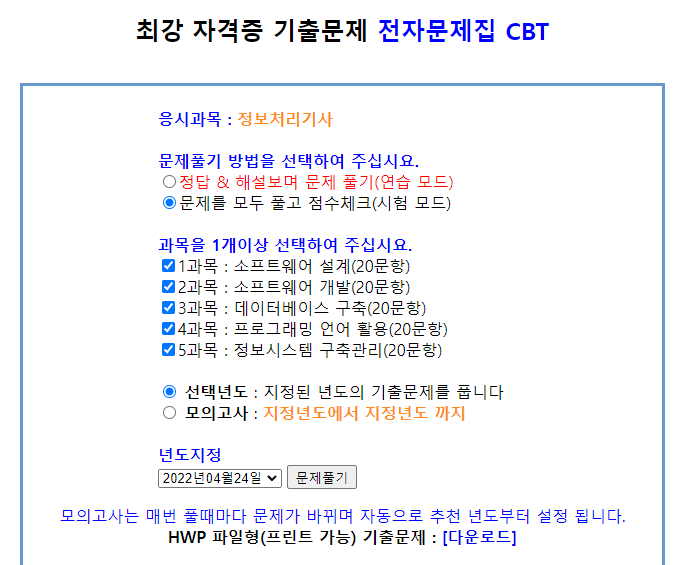 결론부터 말하면, 나는 웹사이트를 통한 기출사이트 CBT(Computer Based Test) 전자문제집을 활용하는 것이다
