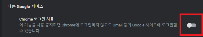 3단계 : Chrome 로그인 허용 활성화 끄기 - 활성화 탭 사라짐