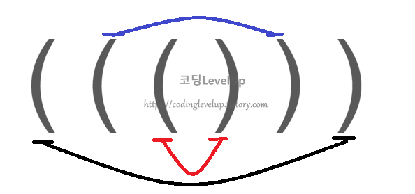 ㄴ 위에서 저장한 '('를 꺼내면서 개수를 빼준다.